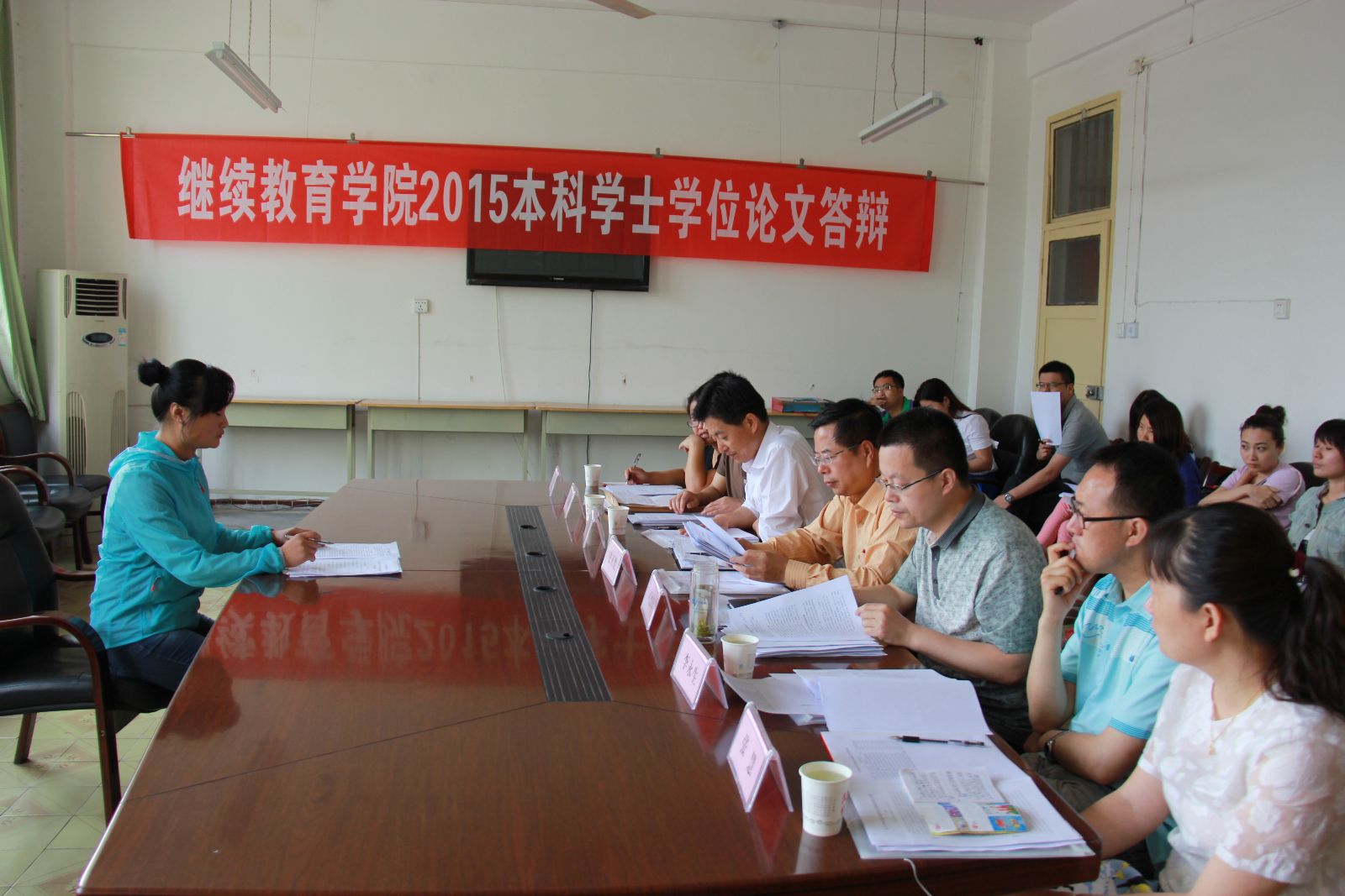 2015年5月23日上午,我院在西岳校区二楼会议室成功举办2015年成人高等教育本科毕业生学士学位论文答辩。院长史天胜、副院长周德锋以及5名论文指导教师担任答辩评委,申请学位的11名成人本科毕业生依次进行了论文答辩。