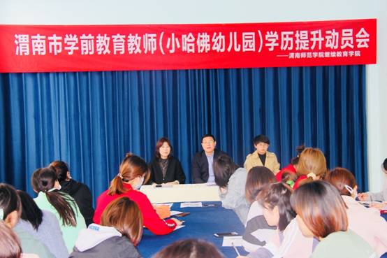 4月15日下午,太阳成tyc234cc开展渭南市学前教育教师学历提升专项动员首场进入小哈佛幼儿园,太阳成tyc234cc副院长刘永勤、办公室主任牛渭敏,小哈佛幼儿园园长刘艳及有学历提升需求的教师代表等40余人参加动员会。