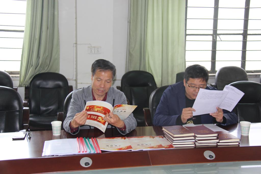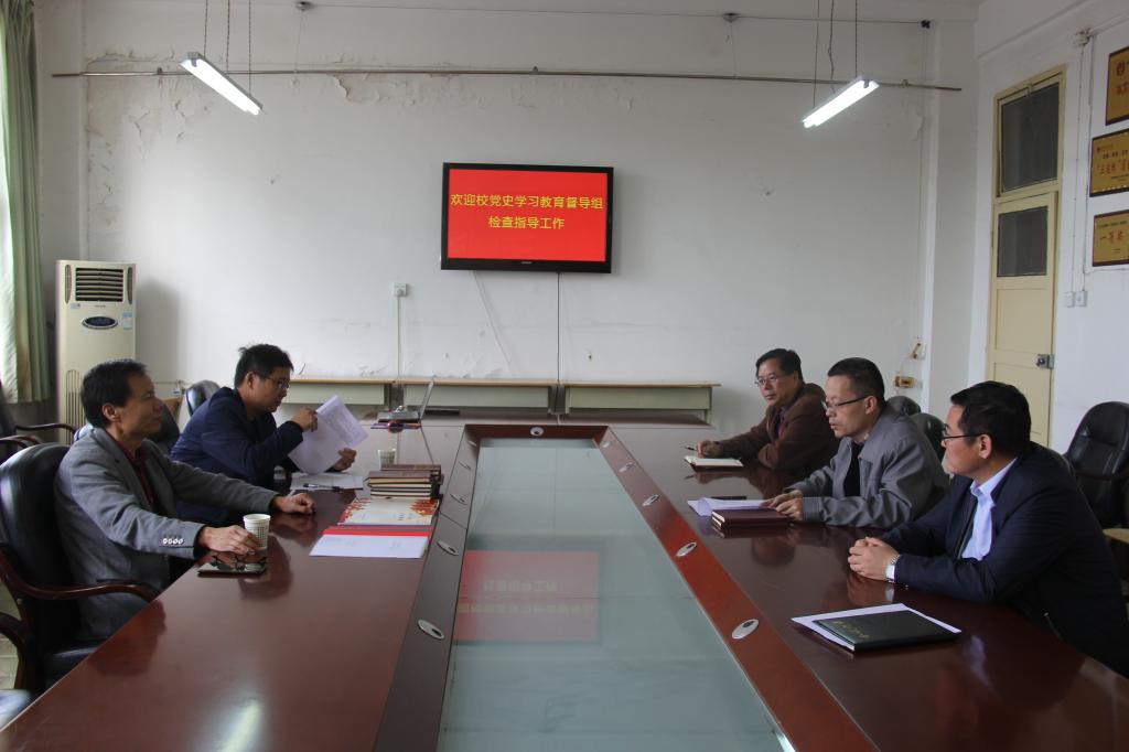 4月29日下午,学校党史学习教育第一督导组成员机关党委书记王俊安、外国语学院党总支副书记高军强检查指导太阳成tyc234cc党史学习教育。太阳成tyc234cc院长史天胜、副书记周德锋、副院长刘永勤陪同检查。
