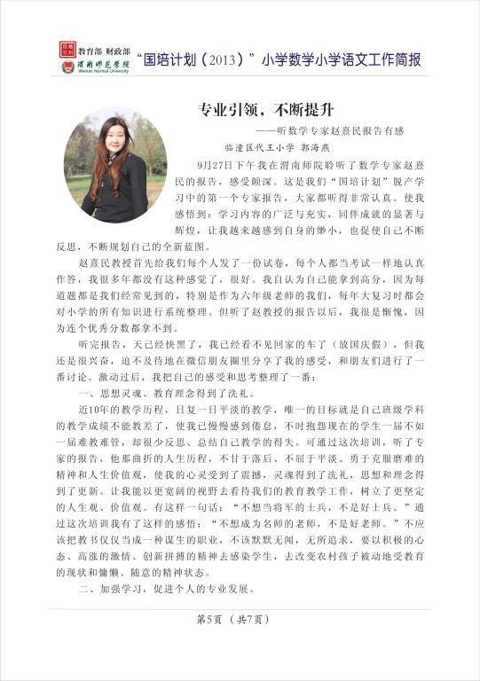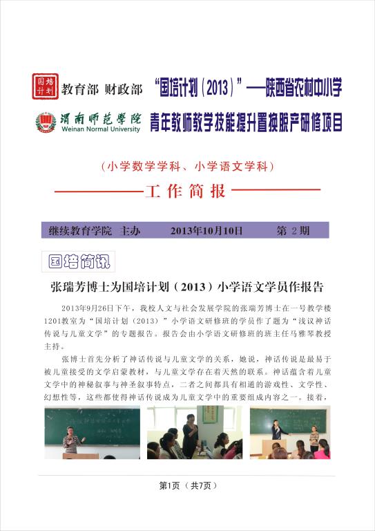 太阳成城集团tyc234cc“国培计划(2013)”第一期简报