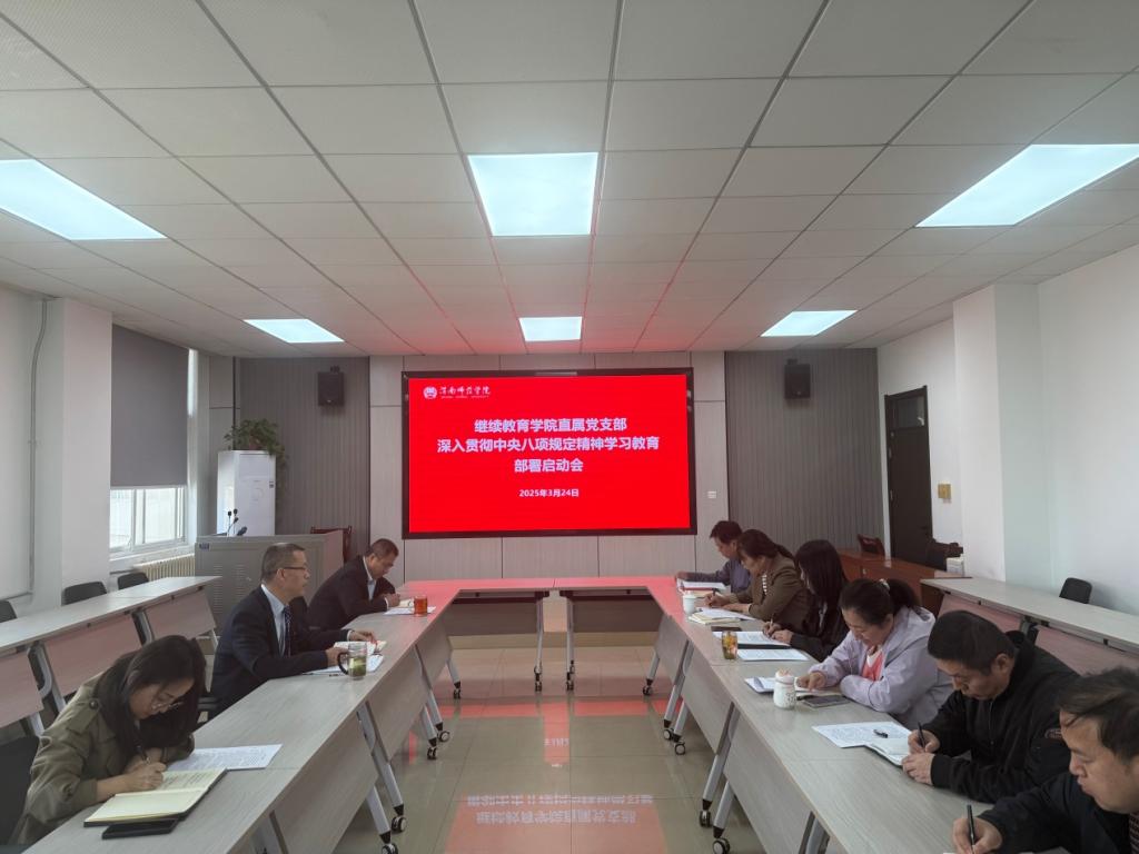 3月24日上午,太阳成tyc234cc直属党支部召开深入贯彻中央八项规定精神学习教育部署启动会。太阳成tyc234cc党员干部参加了部署动员会。直属党支部书记周德锋主持会议。