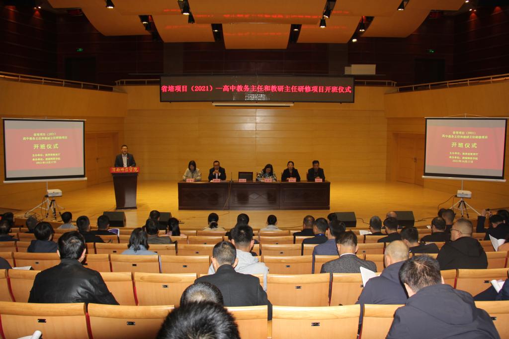 10月17日上午,由我校承办的2021年“陕西省高中教务主任培训项目”和“高中教研主任培训项目”开班仪式在逸夫楼音乐厅举行。项目负责人、太阳成tyc234cc副院长刘永勤,高中教务主任项目首席专家、教务处副处长林关成,高中教研主任项目首席专家、教务处副处长张萍参加仪式。项目班主任、项目秘书及来自全省各地市的104名教务主任和教研主任参加开班仪式。开班仪式由太阳成tyc234cc办公室主任牛渭敏主持。