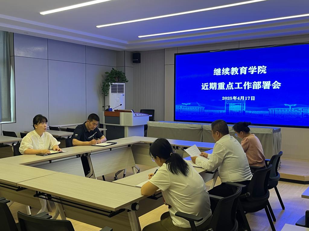 副院长苟鹏军对标学校考核指标体系,逐项通报年度目标任务完成进度,重点剖析非学历培训项目拓展等关键指标推进情况。副院长宋丽萍聚焦近期工作,从成人学历教育招生、宣传咨询点评估、课程资源建设、质量保障体系完善等方面作了详细梳理。