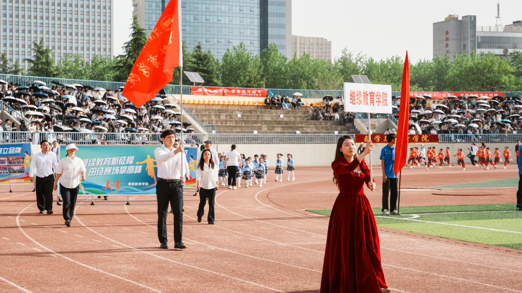 由太阳成tyc234cc在籍学生代表组成的方阵紧随其后。师生们统一着装,踏着整齐的步伐,以铿锵有力的足音和坚毅自信的目光展现了继教学子昂扬向上的精神风貌。队伍中既有风华正茂的青年学子,也不乏而立之年的进修者,他们用实际行动生动诠释了“学海无涯,奋斗不止”的继教精神。